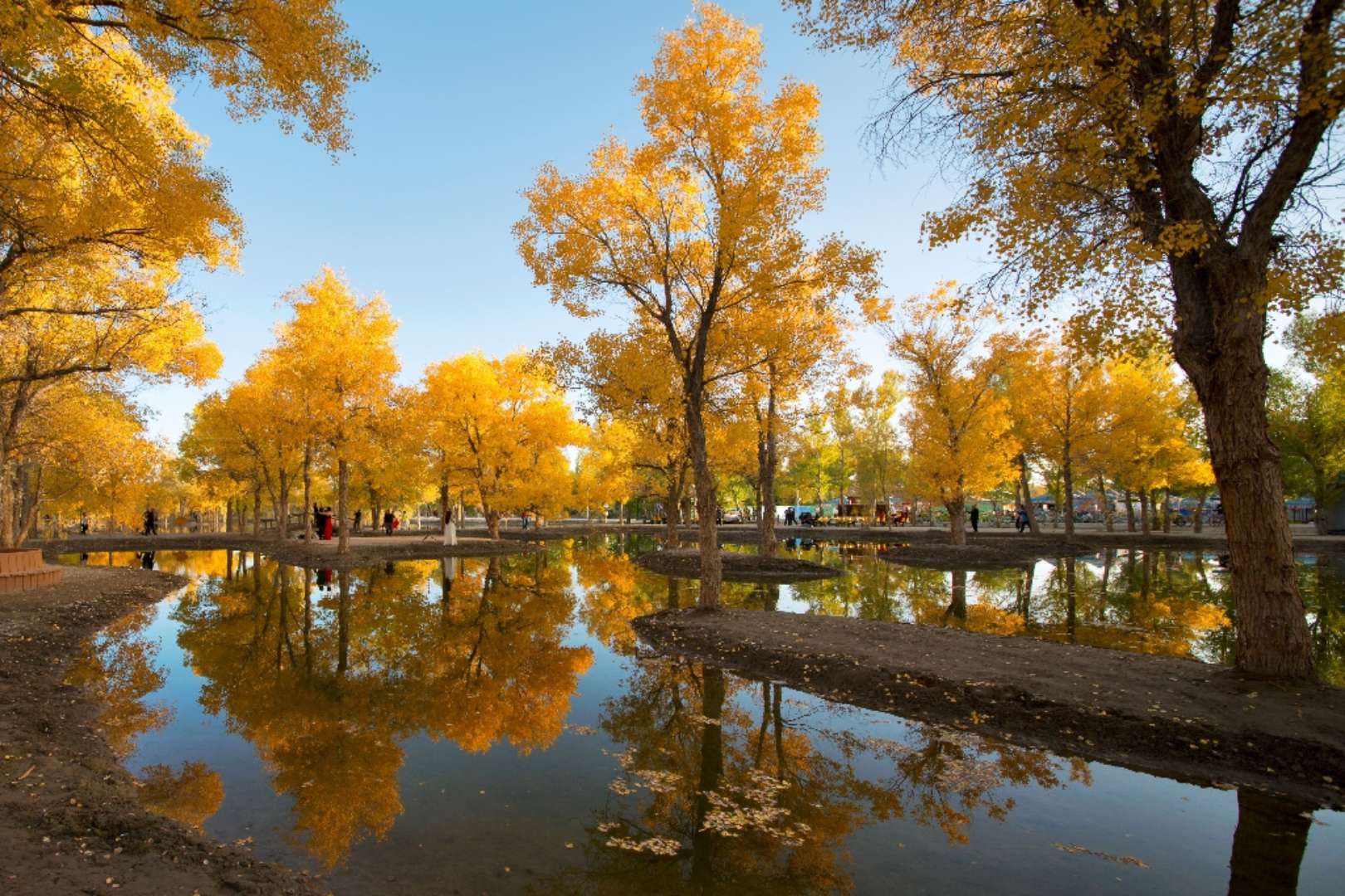 化的植物,大多是野生,被人們譽為“沙漠勇士”。胡楊林是一種神奇的群體,它們耐寒、耐熱、耐堿、耐澇、耐干旱。胡楊生長期漫長,由于風沙和干旱的影響,很多胡楊樹造型奇特、詭異,是一種神奇的自然景觀和獨特的人文景觀,堪稱大漠中的一顆綠色明珠,所以胡楊樹有“活三千年不死,死三千年不倒,倒三千年不朽”之稱。版權(quán)所有山東聊城聊之旅國際旅行社有限公司,轉(zhuǎn)載必究!每年9、10月,當?shù)谝粓銮锼笃暮鷹盍钟删G變黃,一眼望去,陽光下金色的樹葉趁著湛藍的天空于風中婆娑起舞,那種強烈的反差,鮮明的影調(diào),亮麗的色彩,足以令任何語言文字顯得蒼白無力。胡楊是中亞地區(qū)唯一適合生長的喬木,它是大自然漫長進化過程中幸存下來的寶貴物種。它嫵媚的風姿、倔強的性格、多舛的命運激發(fā)人類太多的詩情與哲思。古往今來,胡楊已經(jīng)成為一種精神而被人們所膜拜。