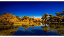 周邊分布大面積的沙棗樹、白楊、紅柳等大西北特有的樹種,該胡楊林分布密集,長勢良好,規(guī)模居全省之冠,極具旅游開發(fā)價值,不久的將來這里便會更加為人們所熟知。金秋十月的胡楊,綠色的樹葉有的已經(jīng)變黃,已經(jīng)變黃的胡楊樹,在湛藍的天空下,在荒蕪的沙漠中如陽光一般明媚燦爛。