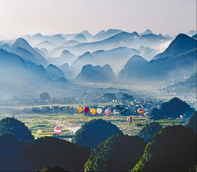 2015年10月11日上午, “多彩貴州”興義萬峰林熱氣球表演賽在萬峰林景區(qū)廣場精彩上演。2016年9月23日上午9點,萬峰林國際山地馬拉松賽在萬峰林景區(qū)西南入口。