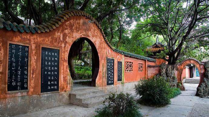 東漢建武十二年(36年),劉秀入川,公孫述戰(zhàn)死,白帝城毀于戰(zhàn)火.如今,城墻遺跡仍清晰可見。在公孫述稱帝的12年間,各地戰(zhàn)亂頻繁,而白帝城一帶卻比較安寧。后人為懷念他,在白帝山上建廟,立其像祭祀,故稱“白帝廟”。白帝廟坐落在瞿塘峽口的白帝山上。遠遠望去,紅墻顯影,樹木蔥郁,樓臺亭閣點綴其問。朝霞如錦、彩云繚繞之時,更有仙山瓊閣之美。