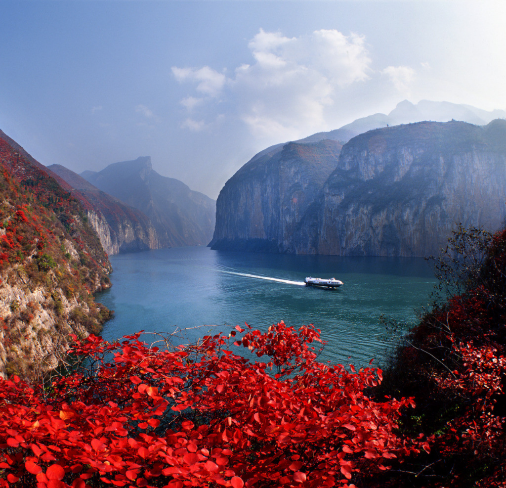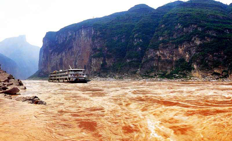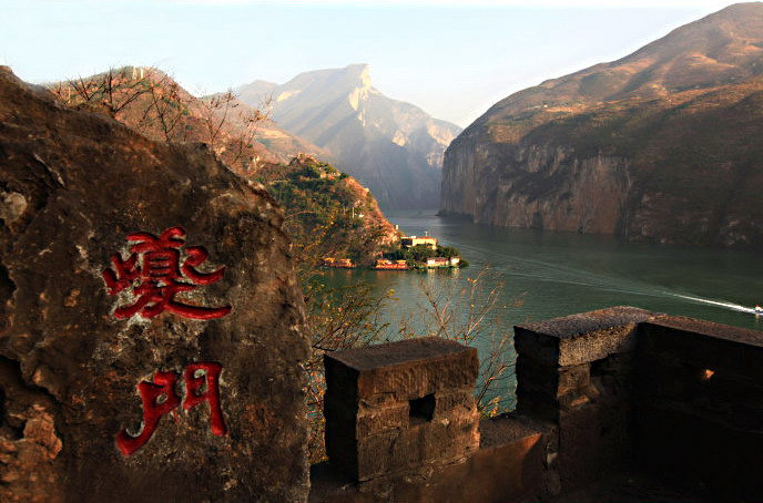 三峽的大門。西起重慶奉節(jié)縣的白帝城,東至巫山縣的大溪鎮(zhèn),全長(zhǎng)8公里。這里河寬只有百余米,把滔滔大江緊束得像一條溝壑,而通過的流量往往多達(dá)每秒五、六萬立方米。“眾水會(huì)涪萬,瞿塘爭(zhēng)一門”,杜甫用一“爭(zhēng)”字,活畫出夔門的赫赫水勢(shì)。當(dāng)輪船駛出瞿塘峽西口后,您走到船尾,抬眼望去,全景式的夔門雄姿便展現(xiàn)在您的面前。這時(shí)是攝影留念的最佳角度。如今,臨江的石壁上,還刻有孫元良的“夔門天下雄,艦機(jī)輕輕過。