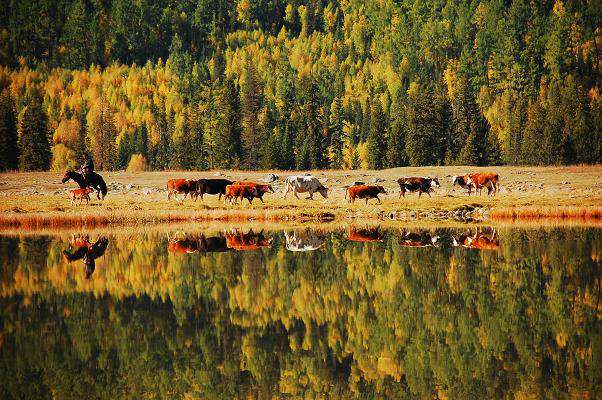 鴨澤湖距喀納斯圖瓦村1公里,西臨喀納斯河,四周環(huán)繞著茂密的森林。有柏油和砂石公路相通。海拔1350米,湖體呈長形蝶狀,沿洼地南端形成一個(gè)南北走向的寬淺湖泊,湖面面積約1.3萬平方米,長3公里,寬600—800米,湖周開闊平緩,湖泊似鏡,夏天有成群野鴨、大雁在湖區(qū)棲息游弋,繁衍生息。