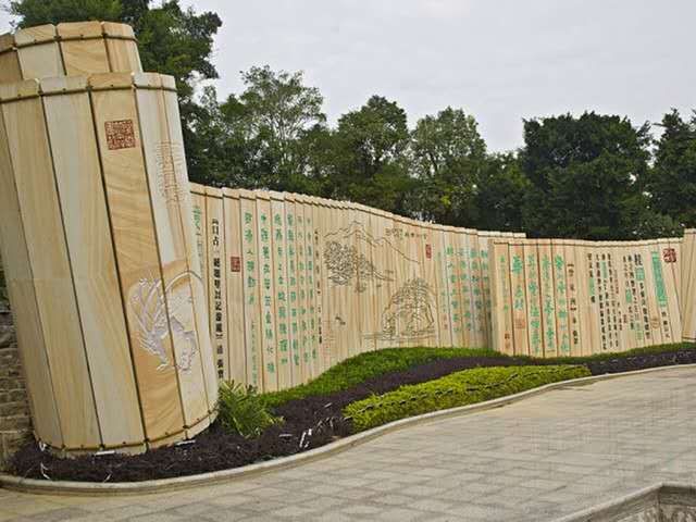 碑亭流芳是由一座仿古風(fēng)格的亭子流芳亭和柳宗元石塑組成,為了紀(jì)念訾洲最早的開(kāi)發(fā)者的裴行立和讓訾洲揚(yáng)名的柳宗元而建。柳宗元石塑將人物和碑刻融合一體,這組雕刻長(zhǎng)8米、高2.5到3米、厚80厘米,全部由花崗巖雕刻而成,總重量達(dá)45噸。石塑分為正反兩面,背面雕刻著兩首詩(shī),均為柳宗元所作。