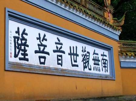 東西兩壁又各塑有16尊不同服飾,不同形態(tài)的菩薩,稱觀音三十二應(yīng)身,即觀音以不同身份教化世人時的現(xiàn)身說法形象。她們是:辟支佛身、聲聞身、梵王身、帝釋身、自在天身、大自在天身、天大將軍身、毗沙門身、小王身、長者身、居士身、宰官身、婆羅門身、比丘身、比丘尼身、優(yōu)婆寒塞身、優(yōu)婆夷身、長者婦女身、居士婦女身、宰官婦女身、婆羅門婦女身、童男身、童女身、天身、龍身、夜叉身、乾闥婆身、阿修羅身、邊樓羅身、緊那羅身、摩睺羅迦身、執(zhí)金剛神身。再加上中間供奉的觀音佛身,共33身。這種塑法是觀音道場的獨特之處。主殿兩旁建有配殿。東首文殊殿,供奉應(yīng)化于五臺山的文殊菩薩;西首普賢殿,供奉應(yīng)化于峨眉山的普賢菩薩。兩側(cè)回廊是羅漢堂,各塑9尊共18尊羅漢。