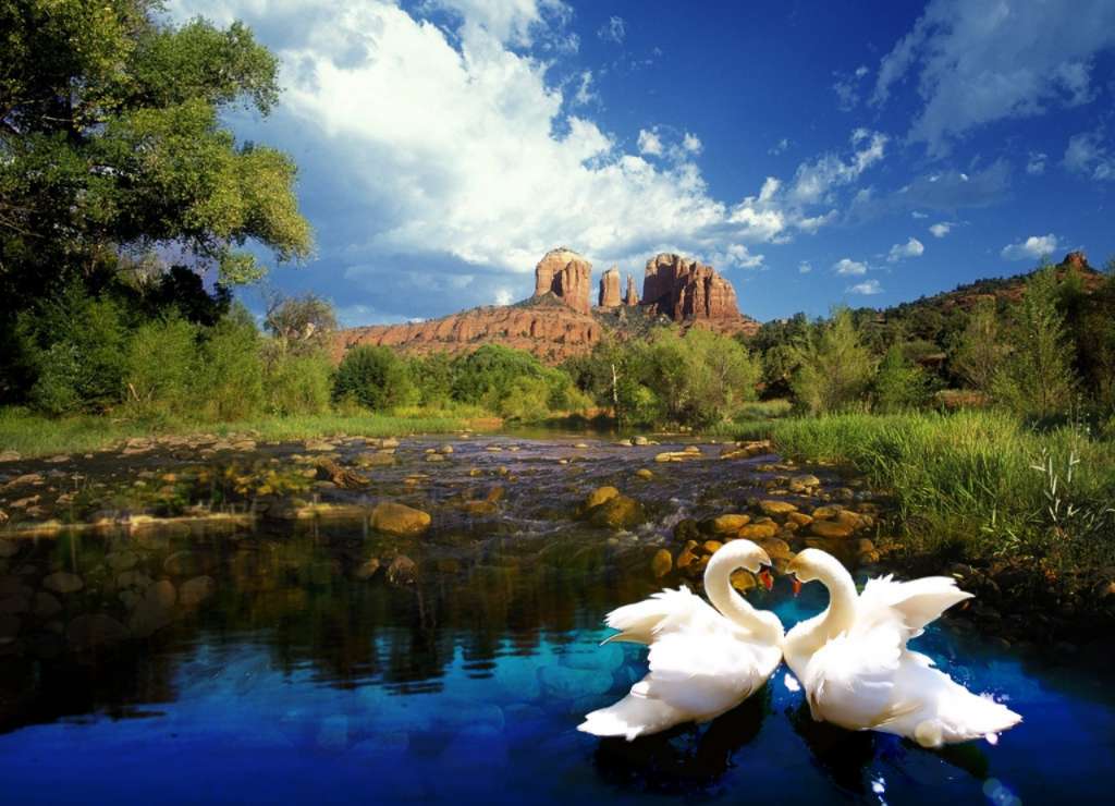 進(jìn)入新洞,首先看到的是一片高高低低的石筍,形態(tài)各異,宛若天上的各路神仙,所以取名為“群仙聚首”。旁邊還棲息著一只天鵝,美麗的身姿,映照在她身后的湖水中,這面湖水也因此而得名為“天鵝湖”。