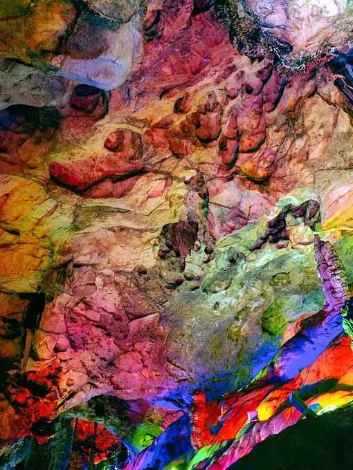 萬象洞形若蒼穹的洞口。洞上方刻有民國(guó)時(shí)甘寧青檢察使高一涵所書的“別有洞天”和趙樸初題寫的“萬象洞”等大字。進(jìn)到洞內(nèi),是一個(gè)高大寬敞的大廳,就是第一景區(qū)——月宮。洞口有一形如臥獸的巨石,正向一形似滿月的透光石洞張望,好似“犀牛望月”,又像在審視出入游人。這里的鐘乳石奇形怪狀,光輝耀眼,或如旭日,或似曉月,或若云霞,或恰仙草放眼望去,處處奇珍異寶,花海果山,怪禽稀獸,五谷豐登,真是萬象競(jìng)秀,名日“萬象更新。版權(quán)所有山東聊城聊之旅國(guó)際旅行社有限公司,轉(zhuǎn)載必究!”向前移動(dòng),美景層出不窮。那由無數(shù)石慢組成的長(zhǎng)約10米,寬約2.8米的石簾,自空垂下,名曰“石簾垂布”,重重敲擊,迸發(fā)出雷鳴似的巨響。那宛如白玉雕就的五根石柱,俊秀挺拔,直指天穹,名稱“五岳朝天”。還有從洞頂垂下的石鐘乳,和地上茁生出來的石筍,垂直相接,相距不到0.3米,起名“天地交泰”,俗稱“天針對(duì)地針。”
