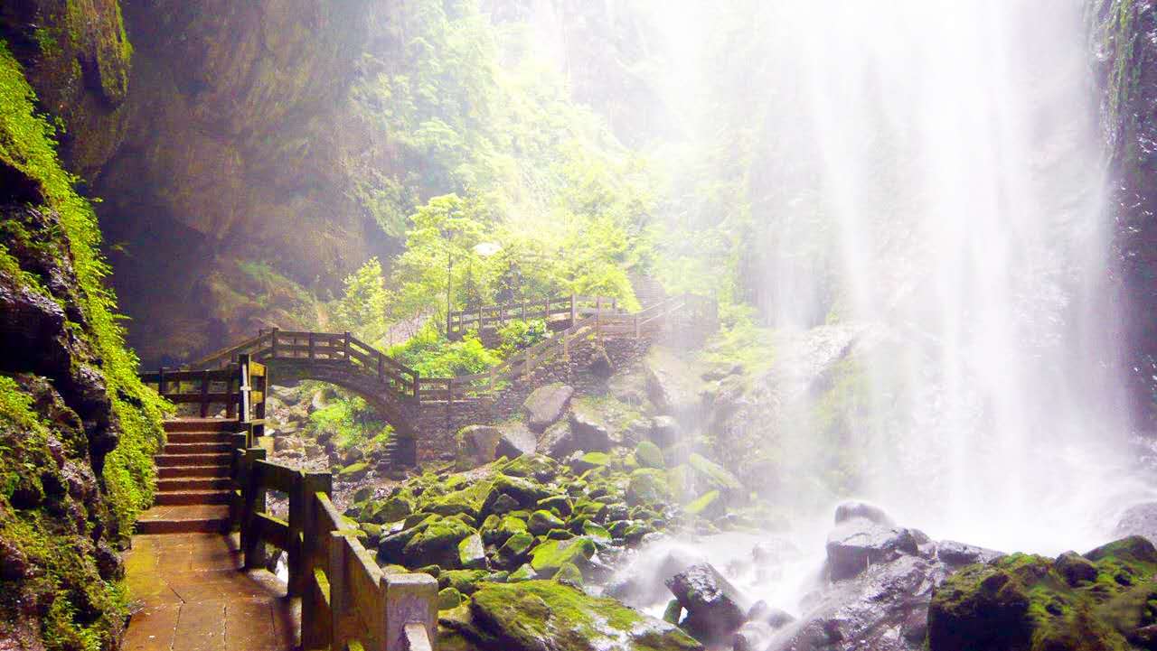 仰望壁立千仞,天光曦微,讓人昏昏然不知身之何處。可以說,觀龍水峽地縫,可知百萬年地質(zhì)變化。幽邃夢境龍水峽喀斯特峽谷地貌的濃縮精華版,全長4公里,山道彎彎嵌綠樹,小溪潺潺揚迷霧,幽邃的龍水峽地縫靜得讓人聽得到心跳。人在棧道行,水在腳邊流,水因地勢、亂石而異向,或急或緩。身在谷底,仰視天小,峰回路轉(zhuǎn),遠(yuǎn)樹白云,俯仰之間,不由頓生柳暗花明之感。俯身掬水濕面,溫潤如玉,跋涉的塵埃早已煙消云散,疲憊的身心在此經(jīng)拂,頓覺清爽沁入五臟六腑,這大概是一種凈化吧……