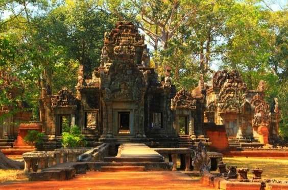吳哥古跡集中分布在柬埔寨還粒市周圍300 平方公里范圍內(nèi),其中包括重要古跡60多處,約有各種建筑物960