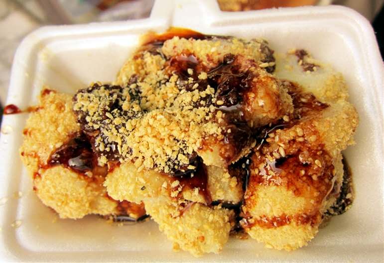 西安鏡糕:陜西的傳統(tǒng)小吃,以糯米為原料蒸制而成的形狀似圓鏡的糕。經(jīng)營鏡糕者多系攤擔(dān)叫賣。清朝有詩云:“柳蔭槐下清晝長,鏡糕擔(dān)子亦生香”的詩句。還沒進(jìn)回民街,在鼓樓的下面就有很多賣鏡糕的小車,鏡糕放在很小的籠屜里,很小,上面有紅紅綠綠的調(diào)料,要吃的時候會再給蘸上芝麻和糖。