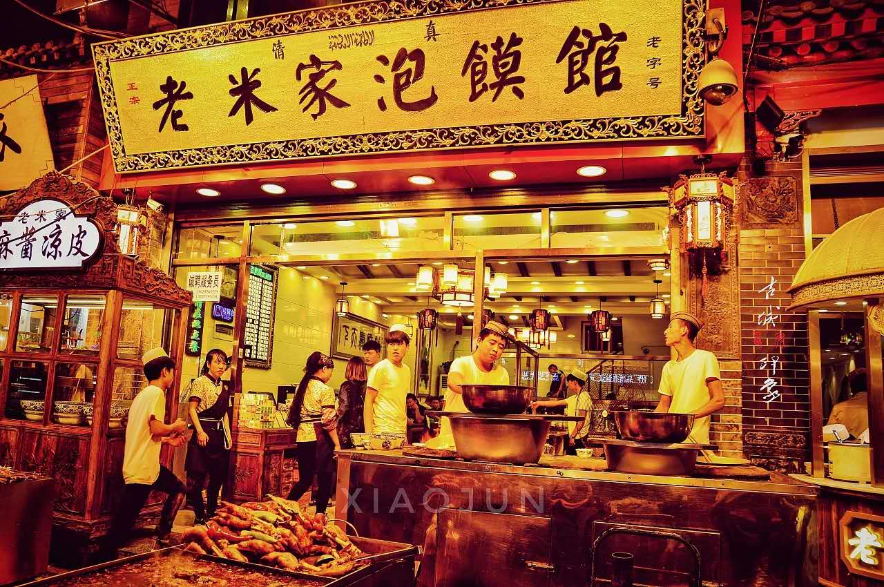 回民街作為飲食集中的街區(qū)而出名,這里雖然被當(dāng)作了針對外地游客的旅游點,但其實當(dāng)?shù)鼐用褚恢卑?/span>這里當(dāng)做吃小吃、逛街休閑的主要場所,尤其是夏天的夜市上在此吃飯納涼消磨時間的市民的更多。其實整個“回坊”地區(qū)都是飯館林立,各種各樣的清真食肆與攤點密密麻麻連成一片,其中不乏當(dāng)?shù)厝俗钫J(rèn)可的老字號小店。