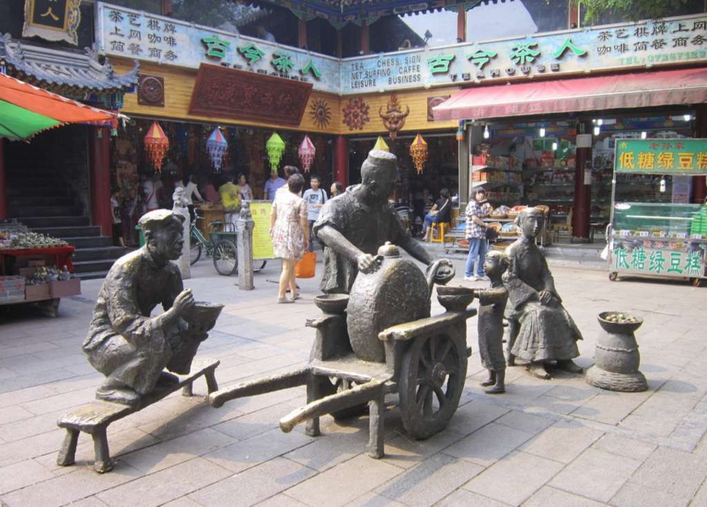回坊風(fēng)情街在鼓樓的邊上,是回民區(qū)的一條街道,長約500米左右,南北走向,特點是青石鋪路,綠樹成蔭,路兩旁一色仿明清建筑,或餐飲、或器物,均由回民經(jīng)營,具有濃郁清真特色。歷史街區(qū)內(nèi)有10座年代不一、大小各異的清真寺,其中最著名的是化覺巷清真大寺。走在街區(qū)內(nèi),隨處可見具有中國傳統(tǒng)建筑風(fēng)格和穆斯林建筑風(fēng)格相融合的商業(yè)網(wǎng)點,民族服飾、工藝品、清真副食、餐飲店和回民小吃店撲面而來。