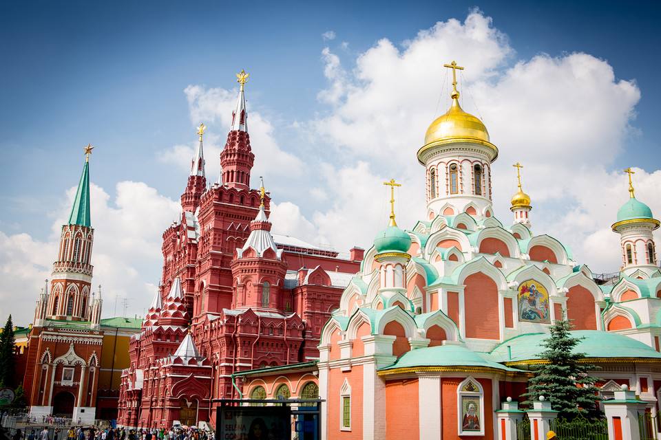 圣瓦西里大教堂為俄羅斯東正教堂,顯示了16世紀(jì)俄羅斯民間建筑藝術(shù)風(fēng)格。