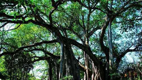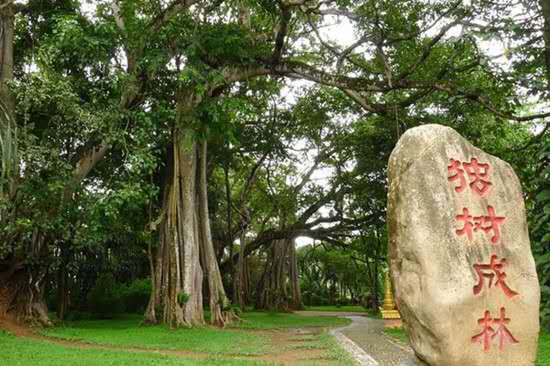 獨樹成林位于打洛鎮(zhèn)邊境貿(mào)易區(qū)內(nèi)的曼掌寨子旁,距離打洛鎮(zhèn)政府以南3.5公里,靠近中緬邊境的地方。這是一棵古榕樹,有900多年的樹齡,共有34個根立于地面,樹高50多米,樹幅面積2000多平方米,枝葉既像一道籬笆,又像一道綠色的屏障,成為熱帶雨林中的一大奇觀,打破了“單絲不成線,獨樹不成林”的俗語。