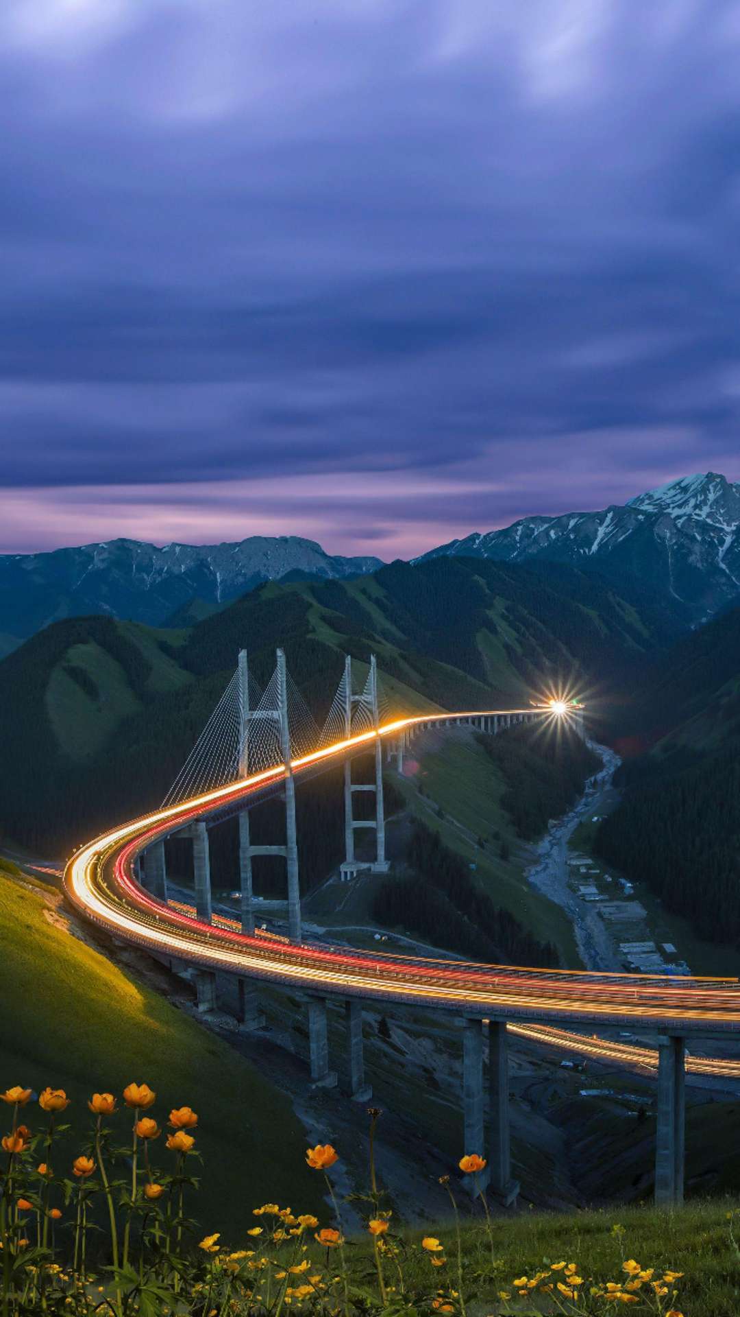 果子溝大橋全稱果子溝雙塔雙索面鋼桁梁斜拉橋,該橋地上部分建設(shè)于07年8月22日開始澆筑。果子溝大橋是國道045線賽里木湖至果子溝口高速公路建設(shè)項(xiàng)目控制性工程之一,橋梁全長700米,橋面距谷底凈高達(dá)200米,主塔高度分別為209米和215.5米,大橋主橋全部采用鋼桁梁結(jié)構(gòu),使用國內(nèi)特殊專用橋梁鋼材17000噸,并采用高強(qiáng)螺栓連接,安裝精度控制在兩毫米以內(nèi)。大橋是自治區(qū)公路第一座斜拉橋,也是國內(nèi)第一座公路雙塔雙索面鋼桁梁斜拉橋。