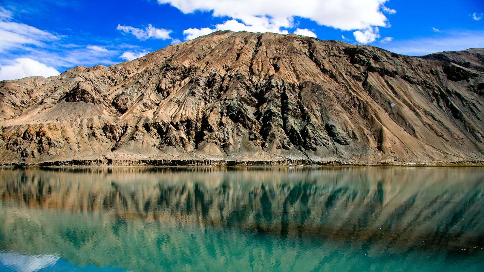 東帕米爾地形較開闊坦蕩,由兩條西北—東南方向的山脈和一組河谷湖盆構成,絕對高度5000米~6000米。相對高度不超過1000米~1500米,山體渾圓,山脈被寬淺的河谷分割,在海拔4000~5000米高處有冰磧平原和荒漠平原。