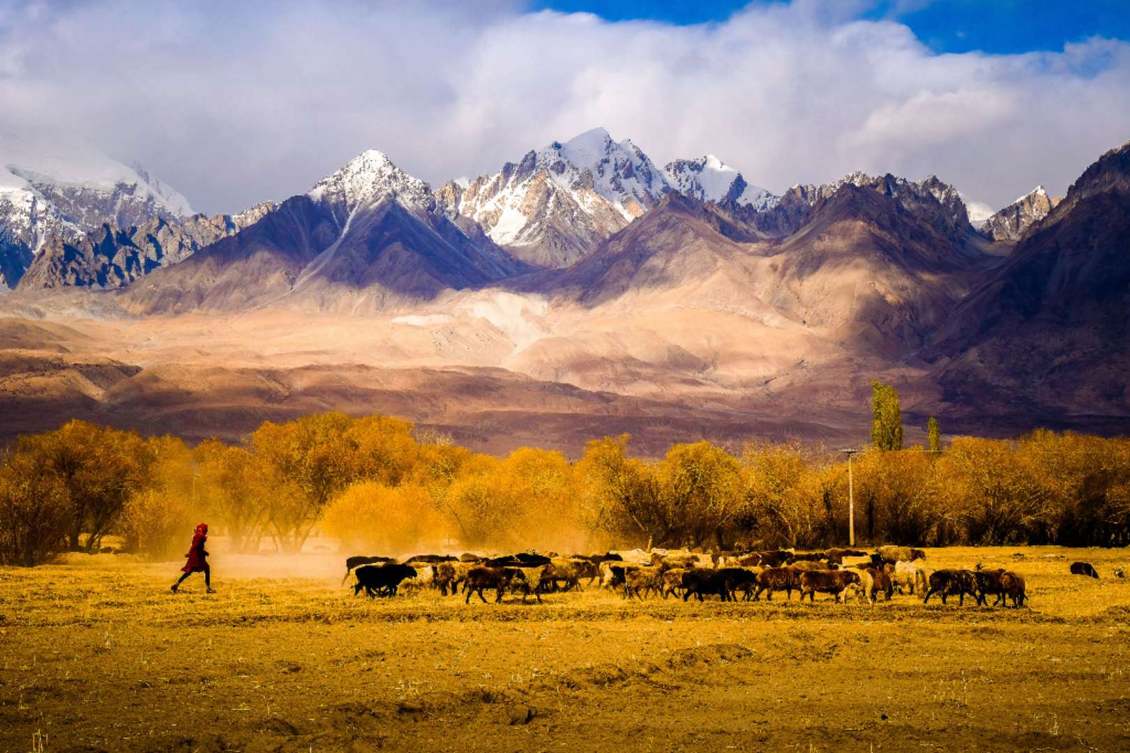 東帕米爾高海拔地區(qū)的牧業(yè)主要是牦牛和有關雜交品種、綿羊和山羊;大麥和馬鈴薯、豆類、油菜籽和根菜是這一地區(qū)的主要農作物。在西帕米爾谷地,政府指令種植棉花和其他農作物。版權所有山東聊城聊之旅國際旅行社有限公司,轉載必究!大果園——主要是蘋果園、梨園和杏園,以及葡萄園——分布于西部許多海拔在1,524~1,981公尺(5,000~6,500呎)之間的谷地和丘陵。小麥是主要糧食,玉蜀黍為冬季主要飼料。牛正在取代綿羊和山羊,成為西部谷地的主要牲畜。