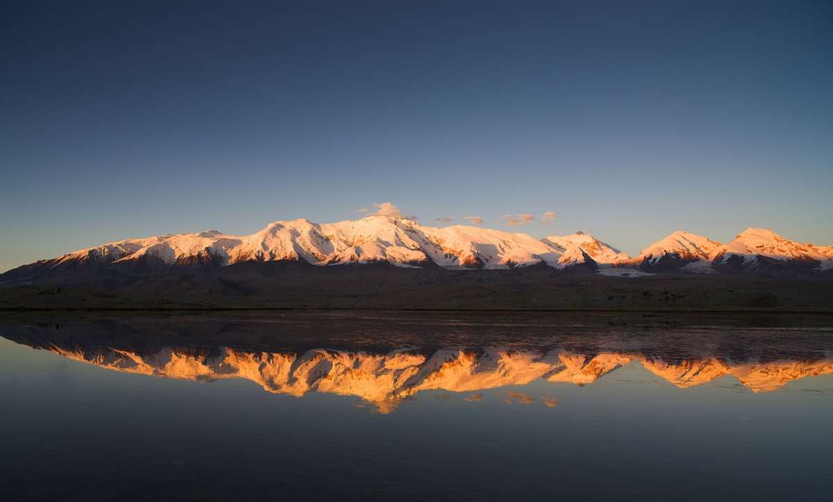 公格爾峰位于新疆克孜勒蘇柯爾克孜自治州阿克陶縣,為昆侖山的高峰之一,海拔7649米。山頂常年積雪,山間懸掛著條條銀光閃閃的冰川,極為壯觀。