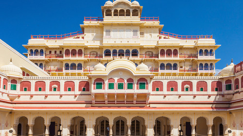齋普爾王宮保存完好,內有10多座富麗堂皇的亭臺樓閣,種有許多奇花異樹,其中以章達拉宮最突出。宮殿高7層,主體采用了印度教古樸渾厚的建筑風格,宮頂門廊又巧借伊斯蘭教拱形穹頂的建筑藝術,它顯得既質樸端莊,又嫵媚壯麗。現在王宮已改為博物館,陳列了許多珍貴的歷史文物。