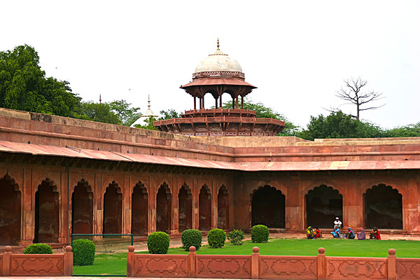 阿格拉宮始建于1565年,后經第五代帝王沙·賈汗改建。因系用紅砂石筑成,故有“紅堡”之稱。宮內樓臺殿宇優(yōu)美別致,有畫棟雕梁的覲見宮,有豪華壯觀的樞密宮和別具一格的鏡宮。鏡宮的墻壁和天花板上鑲嵌了成千上萬塊玻璃,閃閃耀眼。阿格拉宮附近還有全用白大理石砌成潔白如雪的泰吉·瑪哈爾陵。此外,城內還有莫臥兒王朝賈汗吉爾大帝皇后努爾·賈汗為她父親修建的伊提馬德·道拉陵墓以及莫臥兒王朝第三代帝王阿克巴陵墓和法塔赫布爾西格里古堡等文物古跡。
