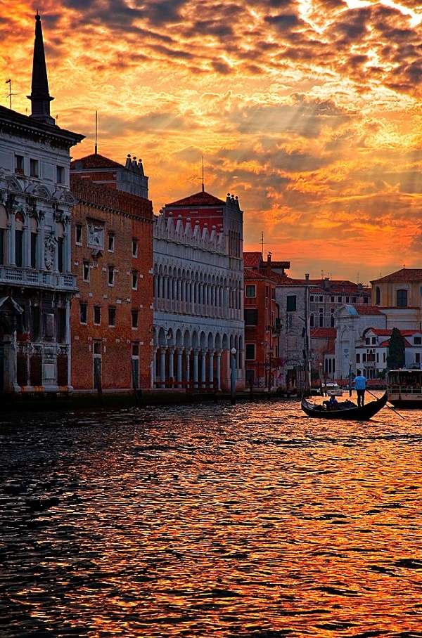 威尼斯大運(yùn)河被譽(yù)為威尼斯的水上“香榭麗舍”大道。在河道的兩邊,散布著各式各樣的古老建筑,既有洛可可式的宮殿,也有摩爾式的住宅,當(dāng)然也少不了眾多的富麗堂皇的巴洛克和哥特式風(fēng)格的教堂。文藝復(fù)興時(shí)代,許多偉大的藝術(shù)家都在這些教堂里面留下了不朽的壁畫(huà)和油畫(huà)作品,至今仍吸引著世界各地的無(wú)數(shù)游客和藝術(shù)家。此外,遍及運(yùn)河兩岸的店鋪、市場(chǎng)以及銀行等等,也給這個(gè)水上大都市增添了無(wú)窮的活力。