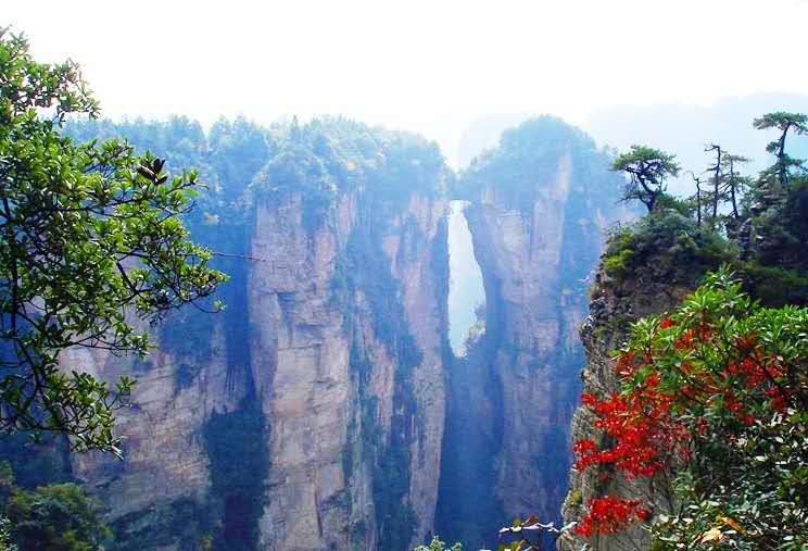 是張家界公園又一處風(fēng)景集中地。自金鞭溪紫草潭左入杉刀溝可上袁家界;順袁家界臺地邊沿,繞荒徑小道亦可下至金鞭溪千里相會處;亦可從袁家界去天子山、楊家寨。