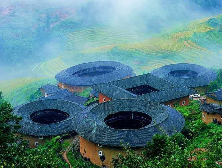 福建土樓產(chǎn)生于宋朝時(shí)代,明、清朝時(shí)期逐漸成熟,并一直延續(xù)至今。福建土樓是世界上獨(dú)一無二的山區(qū)大型夯土民居建筑,依山就勢,布局合理,吸收了中國傳統(tǒng)建筑規(guī)劃的“風(fēng)水”理念,適應(yīng)聚族而居的生活和防御要求,巧妙地利用了山間狹小的平地和當(dāng)?shù)氐纳痢⒛静摹ⅨZ卵石等建筑材料,是一種自成體系,具有節(jié)約、堅(jiān)固、防御性強(qiáng)的特點(diǎn),又極富美感的生土高層建筑模式。福建土樓的建筑材料甚為奇特,由粘土、糯米、紅糖、竹片、水組成,建成的土樓冬暖夏涼,具有很強(qiáng)的抗臺風(fēng)、抗地震能力。曾為湖南衛(wèi)視《爸爸去哪兒第三季》第三站的拍攝地。2016年8月3日,國家旅游局召開新聞發(fā)布會,嚴(yán)重警告南靖土樓景區(qū)。