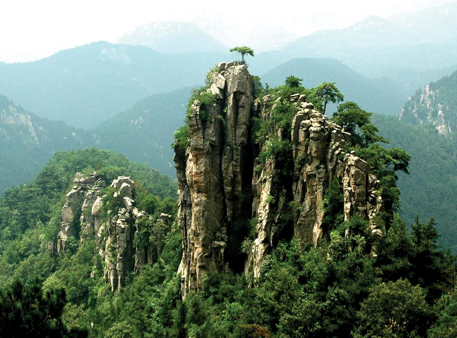 即蒙山主峰,海拔1156米,為山東第二高峰,有“亞岱”之稱。龜蒙頂原酷似龜狀,頭向西北,尾列東南,像神龜俯臥于云端天際。現(xiàn)峰頂呈穹窿狀,東部有玉皇殿,西部有孔子小魯處和迎客松。登上龜蒙頂,云在身邊轉(zhuǎn),風(fēng)從足下生,遠(yuǎn)望齊魯小,使人心胸頓開。