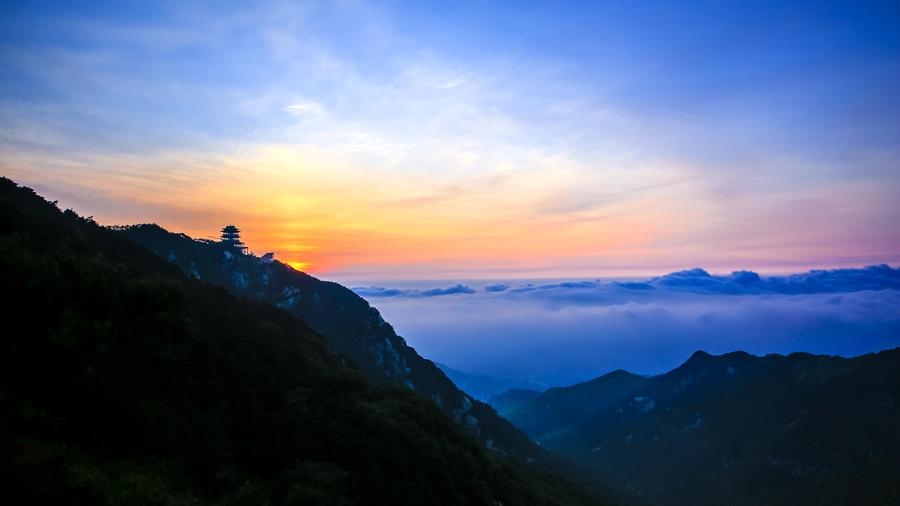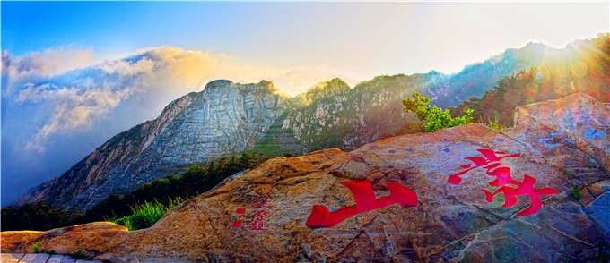 玉皇頂為沂山最高峰,上有玉皇閣、玉皇廟、望海亭、探海石、太清洞等。如在晴日的初晨,立于玉皇頂探海石側(cè),可欣賞到海上日出的奇觀。