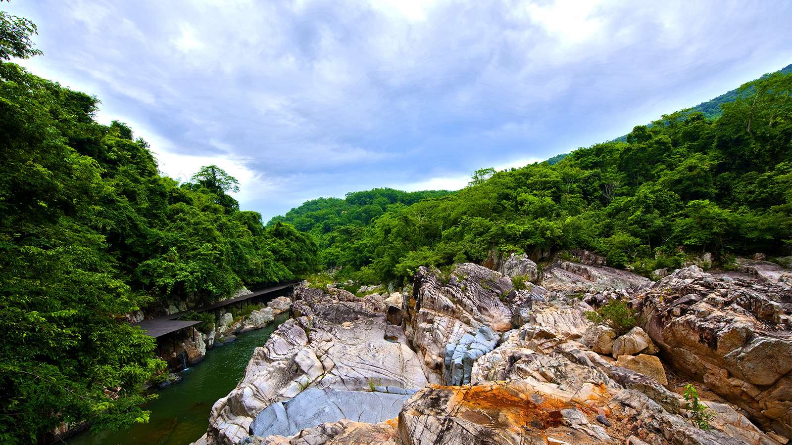 呀諾達(dá)雨林文化已建成的呀諾達(dá)雨林谷,共投資2億元人民幣,“呀諾達(dá)雨林谷”以美國(guó)電瓶車、生態(tài)棧道、飛瀑索道、高品質(zhì)旅游巴士環(huán)繞成18公里長(zhǎng)的園區(qū)通道,由藍(lán)月谷和夢(mèng)幻谷兩個(gè)區(qū)域組成。雨林谷內(nèi)生長(zhǎng)著大量的原始森林和次森林,包容了絞殺現(xiàn)象、空中花籃、老莖生花、高板根、藤本攀附、根包石海南熱帶雨林的六大奇觀,是海南五大熱帶雨林的精品濃縮。谷區(qū)密林深處的生態(tài)棧道、巨石兩邊陡峭的石級(jí)、懸空搖晃的過山吊橋、峽谷飛瀑中攀爬的鐵索依山勢(shì)地形巧妙結(jié)合,讓游客一走進(jìn)“呀諾達(dá)”,就感受到雨林深處?kù)o謐和神奇,領(lǐng)略到飛瀑戲水的刺激和樂趣,體會(huì)到空中天道的震撼和新奇。