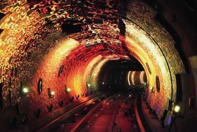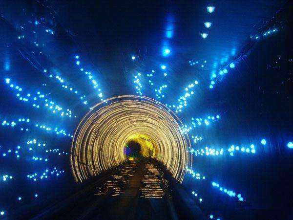 外灘觀光隧道是融交通與旅游功能為一體的又一標(biāo)志性景觀工程,它利用空間,運(yùn)用現(xiàn)代高科技手段,在隧道內(nèi)演示反映人物、歷史、文化、科技、風(fēng)景等各種圖案、景象及背景音樂,使過江過程帶有極強(qiáng)的趣味性、娛樂性和刺激性,給游客留下美好的記憶。連接浦江兩岸的圓形隧道內(nèi)徑6.67米,隧道全長646.7米,采用目前國際上最先進(jìn)的連續(xù)式軌道自動車廂運(yùn)輸系統(tǒng),整個(gè)過江時(shí)間在2.5-5分鐘,每小時(shí)最大輸送量為5000人次。