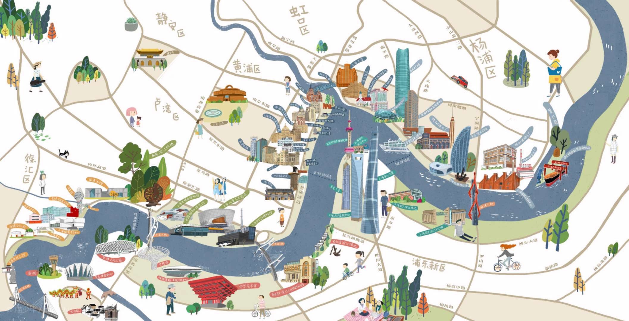 二是人文性,人是文化的主要載體,文化因人而存在和發(fā)展。一方水土養(yǎng)一方人,正是在喝著浦江水長大的兒女的共同參與下,黃浦江才散發(fā)出生生不息的人文氣息,展現(xiàn)出如法國塞納河、英國泰晤士河、德國萊茵河般的迷人風采。