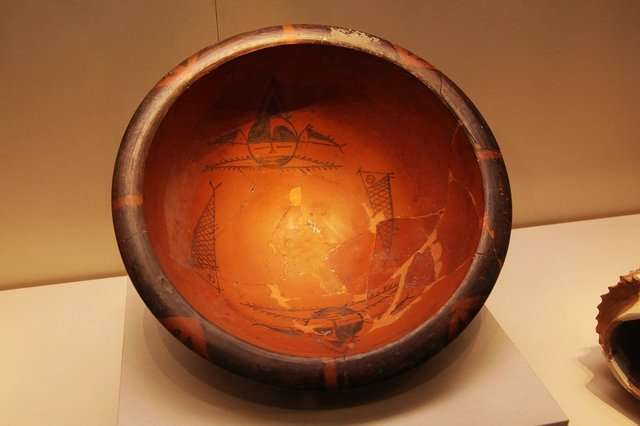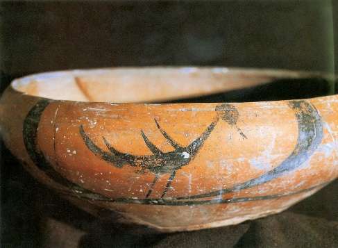 從半坡遺址中看到的大量絢麗多彩的陶器,表明這一時(shí)期的文化為彩陶文化。其繪畫作品有的豐富生動(dòng),有的神秘難測(cè),有的則圖案化,多繪在盆、缽、罐、細(xì)頸壺上,繪畫作品多繪在小口器肩,腹和口部,直口器多繪在外壁或口緣外側(cè),大口器多繪于器內(nèi)壁。多見黑彩,還有少量紅彩。