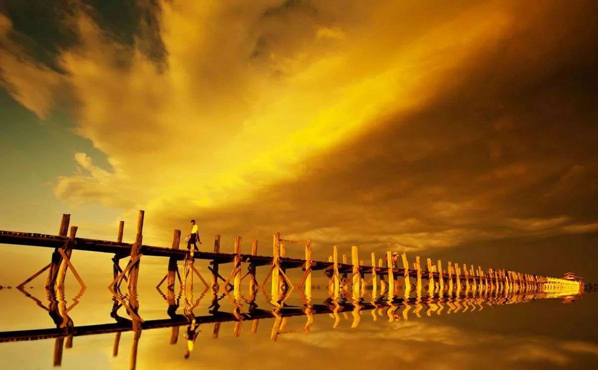 烏本橋(U Bein Bridge),在緬甸的Amarapura(阿馬拉布拉)古城境內(nèi),橫跨東塔曼湖(Taungthaman),長(zhǎng)達(dá)1200米,是世界上最長(zhǎng)的柚木橋。