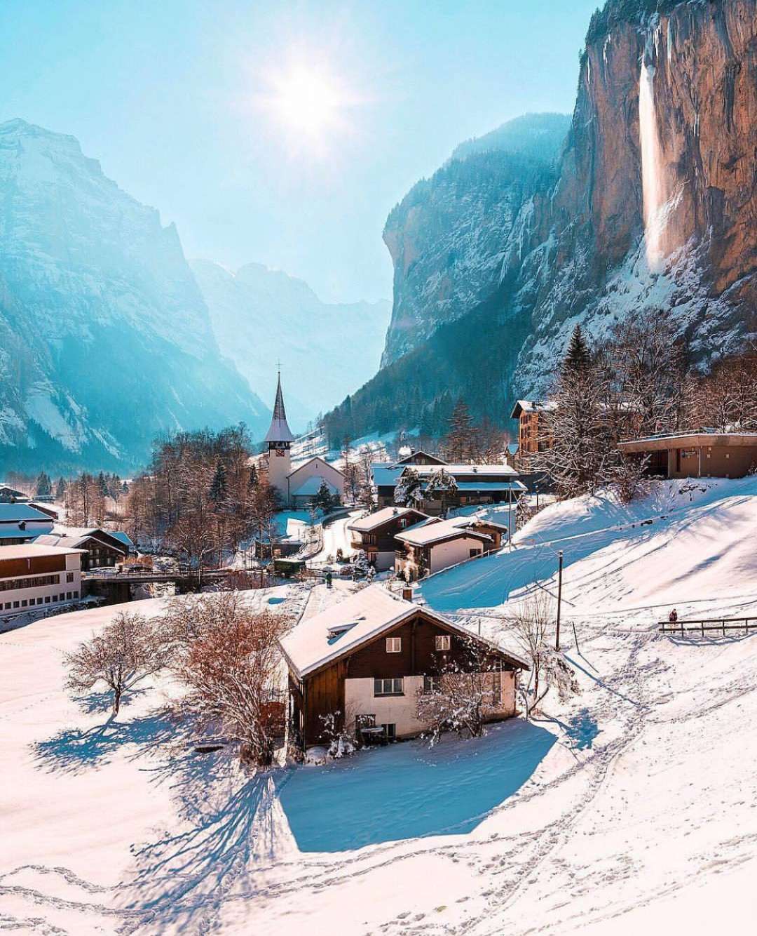 因特拉肯(INTEL‘LAKEN,即“湖間”之意)屬伯爾尼州,距離伯爾尼市約50公里,地處圖恩湖和布里茵茨湖之間,海拔只有568米,是瑞士著名的風(fēng)景區(qū)之一。這里群山環(huán)抱,綠色草場廣闊開敞,瑞士著名的少女峰終年白雪冠頂,倒映綠色湖中,遠(yuǎn)山近水,湖光瀲滟,置身此地,如在畫中。