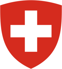瑞士國旗呈正方形。旗底為紅色,正中一個白色十字。