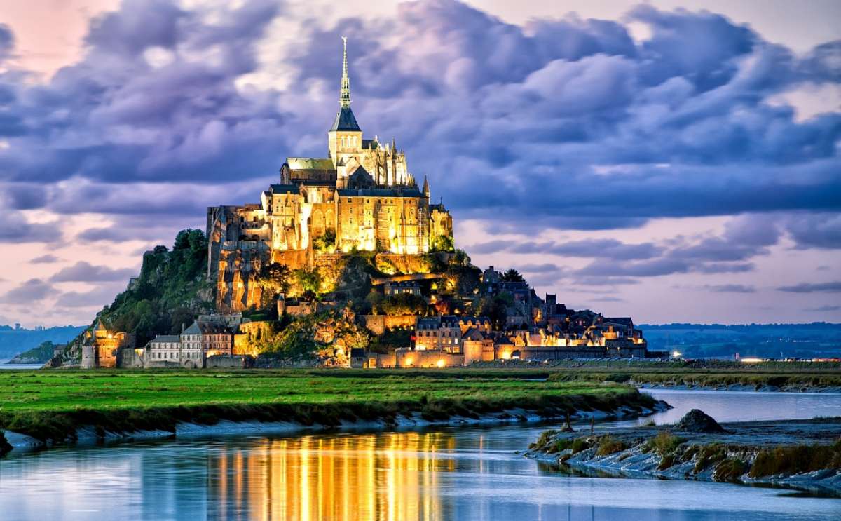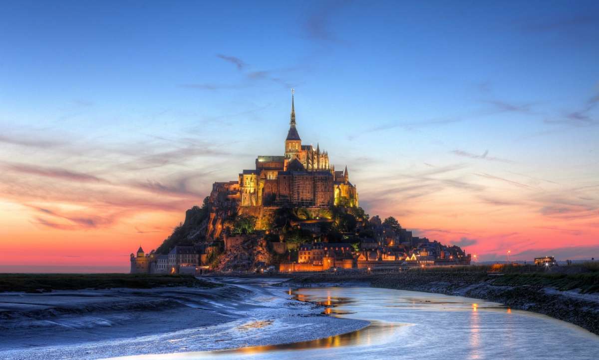 圣米歇爾山(Mont-Saint-Michel)位于法國(guó)諾曼底附近,是距海岸約1公里的巖石小島,為法國(guó)旅游勝地,也是教徒的朝圣地,山頂建有著名的圣米歇爾修道院。