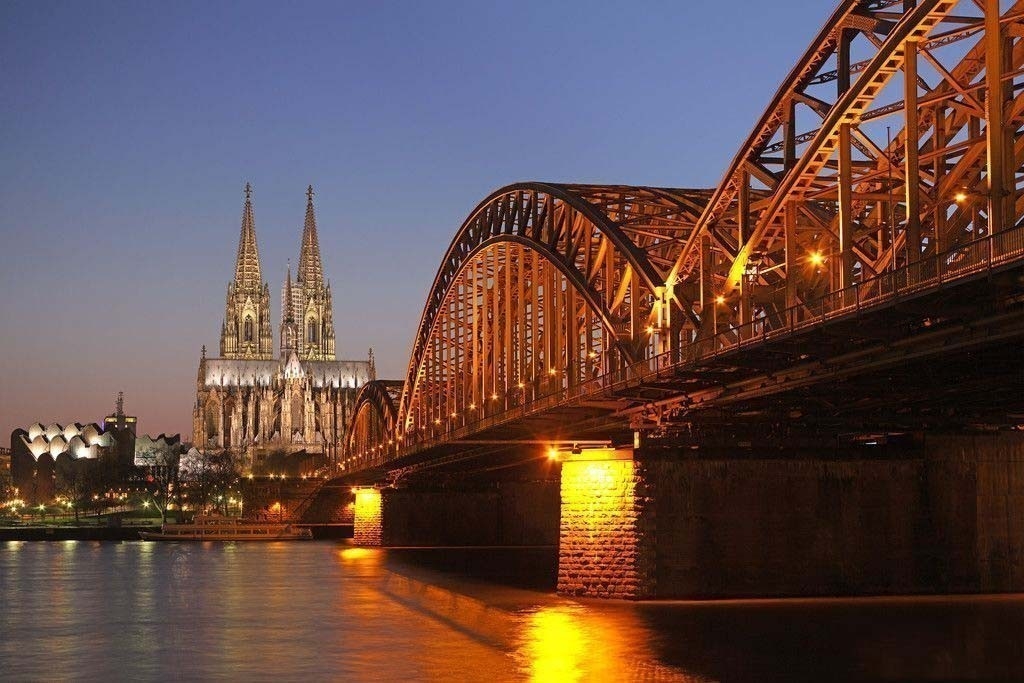 早在1859年在這個(gè)位置上就已經(jīng)建起了一座有兩股鐵路的大教堂橋,但是到20世紀(jì)初這座橋無法承受不斷提高的交通量。因此從1907年至1911年它被霍亨索倫橋取代。版權(quán)所有山東聊城聊之旅國際旅行社有限公司,轉(zhuǎn)載必究!這座橋由三座平行的橋組成,每座橋上有三個(gè)鋼鐵桁架拱,橋上共有四顧鐵路和一條公路。雖然在造大教堂橋的時(shí)候就已經(jīng)有人批評(píng)橋和火車站的位置,但是霍亨索倫橋還是依照其前身的走向,直接位于大教堂的軸心線上。