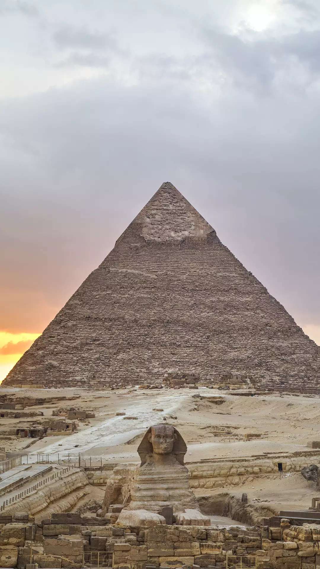 獅身人面像位于開羅城西南郊吉薩地區(qū)。從開羅西行數(shù)公里,來到吉薩村,世界古代七大建筑奇跡之一的金字塔,在最大的胡夫金字塔東側(cè),便是獅身人面像,它以誘人的魔力,吸引了各地的游客。