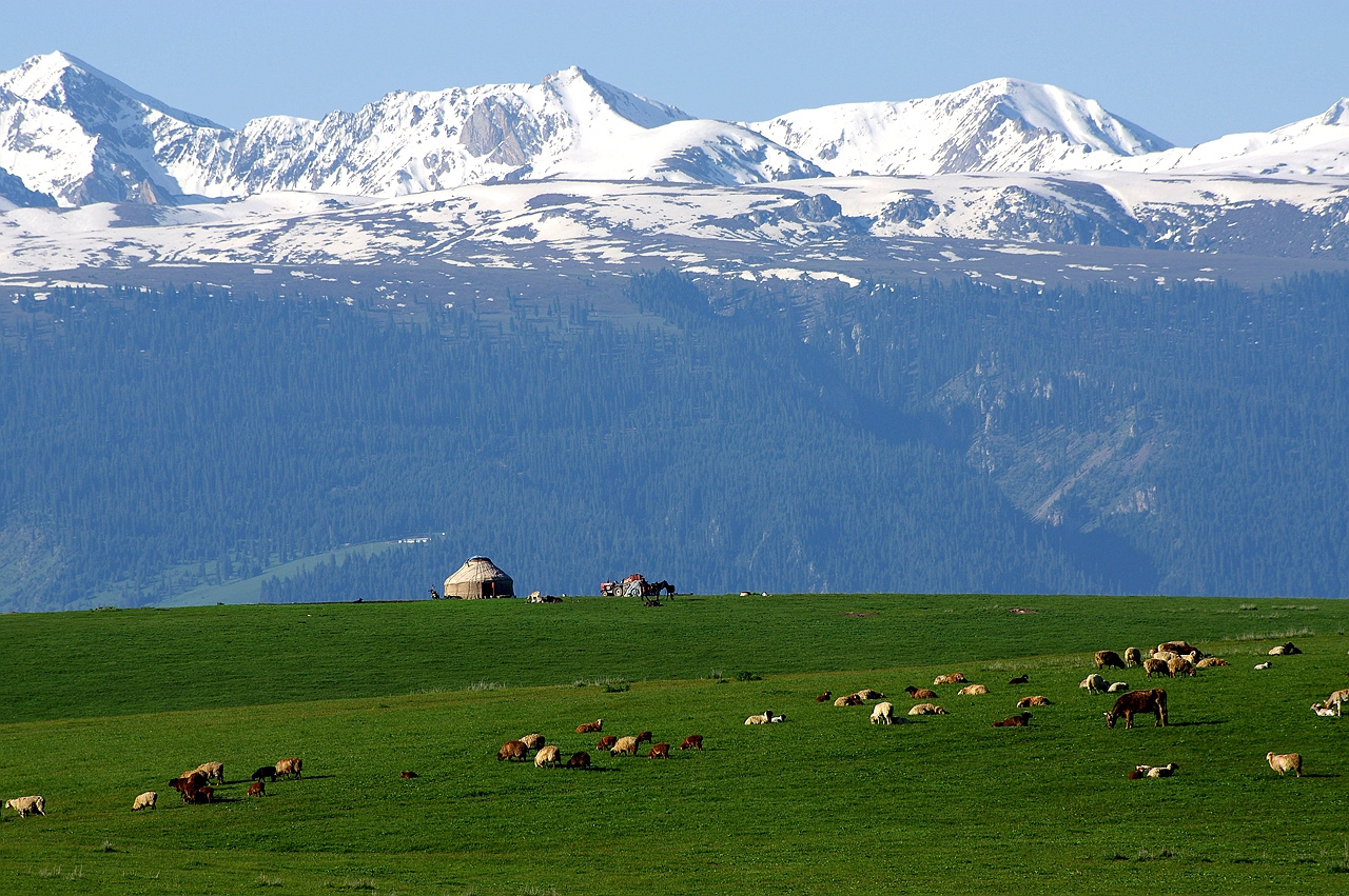 昭蘇草原,屬溫帶山區(qū)半干旱半濕潤(rùn)冷涼氣候類型,特點(diǎn)是冬長(zhǎng)無(wú)夏,春秋相連,沒(méi)有明顯的四季之分。