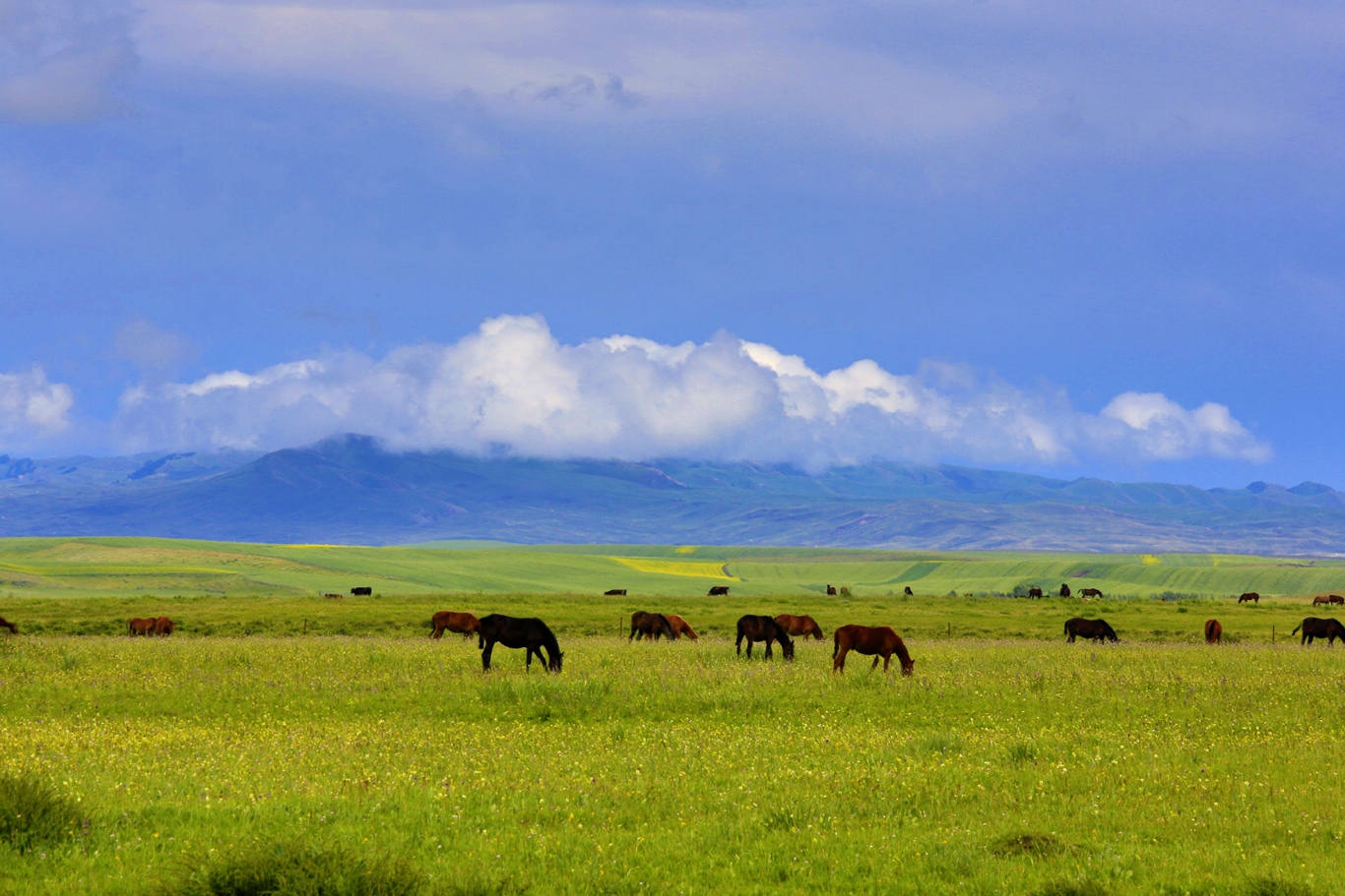 昭蘇草原是我國(guó)最著名的四大草原之一。盛夏七月,那里綠水青山,油菜花盛開(kāi),氣候涼爽,更有草原石人、圣佑廟、格登山記功碑等人文勝跡,是新疆旅游、避暑的首選之地。