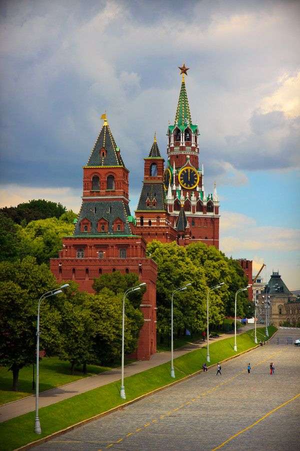 克里姆林宮為紅場最主要建筑,是俄羅斯民族最負盛名的歷史豐碑,也是全世界建筑中最美麗的作品之一。它初建于12世紀中期,15世紀莫斯科大公伊凡三世時初具規(guī)模,以后逐漸擴大。16世紀中葉起成為沙皇的宮堡,17世紀逐漸失去城堡的性質(zhì)而成為莫斯科的市中心建筑群。克里姆林宮南臨莫斯科河,西北接亞歷山大羅夫斯基花園,東南與紅場相連,呈三角形,周長2000多米。20多座塔樓、參差錯落地分布在三角形宮墻邊,宮墻上有5座城門塔樓和箭樓,遠看似一座雄偉森嚴的堡壘。宮殿的核心部分是宮墻之內(nèi)的一系列宮殿,建筑氣宇軒昂,體現(xiàn)出歷代俄羅斯人的聰明才智。另有政府大廈和各種博物館。最具特色的是一組有洋蔥頭頂?shù)母咚鼈兪窃诩t磚墻面用白色石頭裝飾的,再配上各種顏色外表,如金色、綠色以及雜有黃色和紅色等。它由俄著名建筑師巴爾馬和波斯尼設(shè)計,不同于歐洲古代的哥特式與羅馬式,而與東方清真寺風格頗為相似。克里姆林宮也吸收了西方建筑的精粹,它的幾幢主要建筑都是由意大利設(shè)計師設(shè)計的,所以,克里姆林宮建筑藝術(shù)上博采眾長又獨具特色,獲得普遍贊譽。