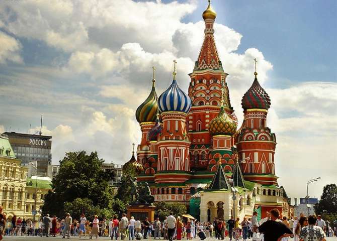 克里姆林宮整體呈不等邊三角形。面積27.5萬平方米,周長2公里多,始建于1156年。1935年在斯巴斯克塔、尼古拉塔、特羅伊茨克塔、鮑羅維茨塔和沃多夫塔等塔樓各裝有大小不一的五角星,以紅水晶石和金屬框鑲制而成,內(nèi)置5000瓦功率照明燈,紅光閃閃,晝夜遙遙可見。