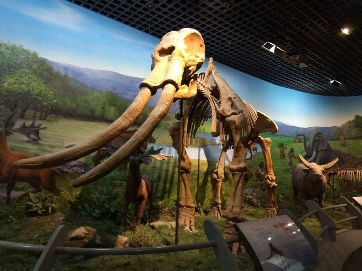 披毛犀全體骨架:體長3.5米,高1.7米,晚更新世。1964年于內(nèi)蒙古鄂爾多斯市烏審旗薩拉烏蘇發(fā)現(xiàn)。