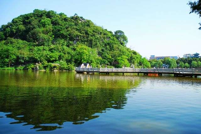 桂林西山景區(qū)位于桂林市中心,占地面積125萬平方米,早在1000多年前的唐代便成為旅游勝地,是桂林最早被開發(fā)的旅游景區(qū)。景區(qū)由西山群峰、西湖及隱山組成,里面群峰環(huán)繞聳立,西湖、桃花江相映帶,形成山重水復的奇景。每近黃昏,夕陽斜掛山峰,云林變幻、金光萬道、紫氣蒸騰,是為膾炙人口的桂林老八景之“西峰夕照”。此外,據(jù)載唐代天下西湖三十六,以桂林西湖為大,湖水明透如鏡,山巒翠彩,倒映水中,是全中國唯一山水相連的西湖;湖中荷香漣漪,煙波裊裊,一玲瓏小山其間若隱若現(xiàn),是名隱山。隱山多洞,著名的有北牖、朝陽、白雀、嘉蓮、南華、夕陽,合稱“隱山六洞”。清代學者阮元所著的《隱山銘》中說:“一山盡空,六洞互透。”六洞各呈姿態(tài),多與泉水相連,成為地下“龍宮”,人稱“八桂巖洞最奇絕處”。