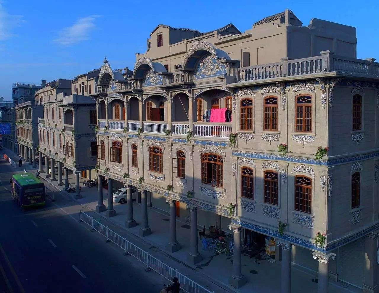 這種歐陸建筑與東南亞地域特點相結合的一種建筑形式可以擋避風雨侵襲,擋避炎陽照射,造成涼爽環(huán)境,因此在東南亞十分風靡,隨后也傳入華南地區(qū)。騎樓是我國福建、廣東、海南、廣西等沿海僑鄉(xiāng)特有的南洋風情建筑,都是當年華僑從南洋返鄉(xiāng)所建。