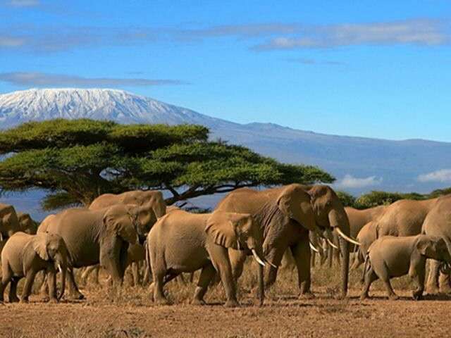 安波塞利國家公園(Amboseli Park)是非洲度假勝地之一,位于肯尼亞與坦桑尼亞交界地區(qū),肯尼亞邊境,在這里可以清晰地看到海拔5895米的非洲第一高峰乞力馬扎羅山。接近赤道的乞力馬扎羅山頂終年覆蓋著積雪,山下莽原景色優(yōu)美,安波塞利國家公園位于公園面積392平方公里,由于臨近云霧繚繞的非洲之巔——乞力馬扎羅山,吸引著一批批前來觀光的游客。安波塞利就是“干涸的湖”的意思。