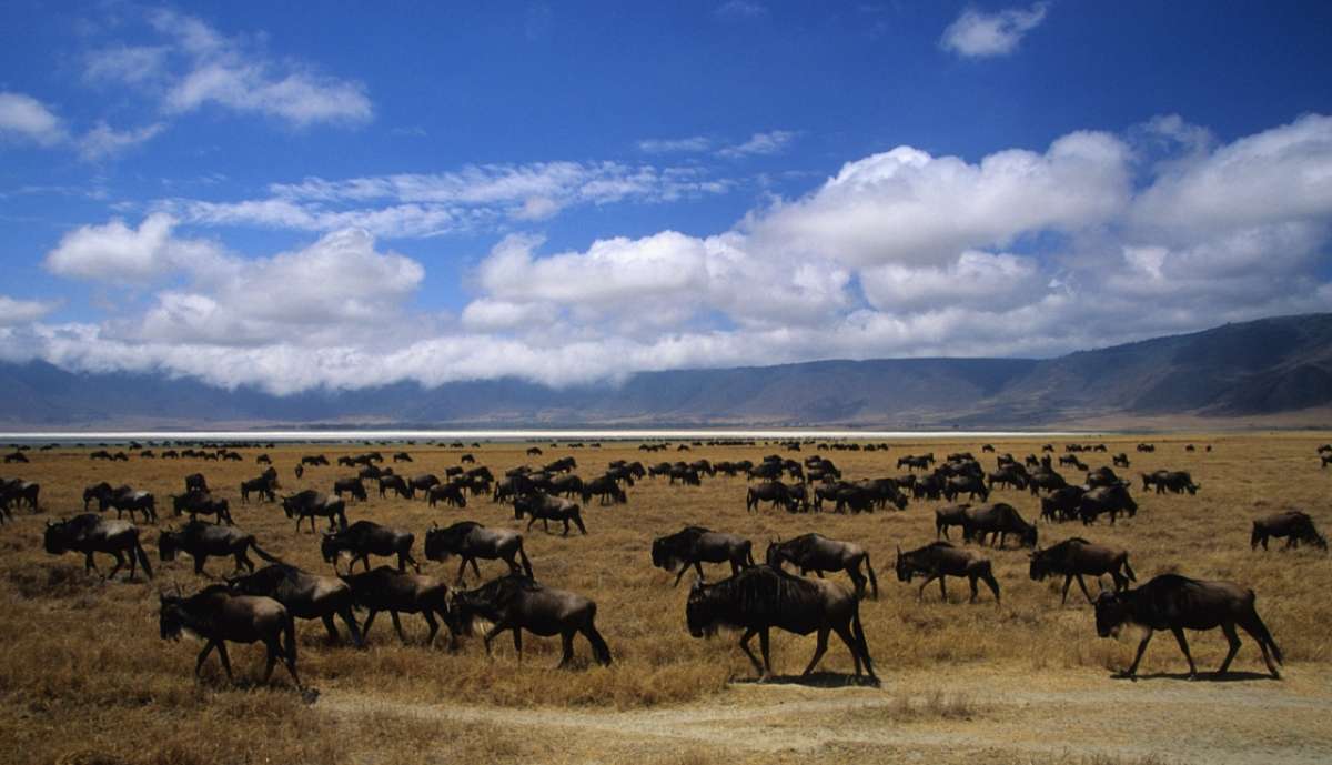 這里是非洲野生動(dòng)物最集中的地方,在火山口內(nèi)260平方公里地面上,估計(jì)約有30000只動(dòng)物,其中有50多種大型哺乳動(dòng)物,包括獅子、大象、犀牛、河馬、長(zhǎng)頸鹿、猴子、狒狒、疣豬、鬣狗及各種羚羊:200多種鳥,包括鴕鳥、野鴨、珍珠雞等。該火山口是整個(gè)東非野生動(dòng)物世界的縮影。