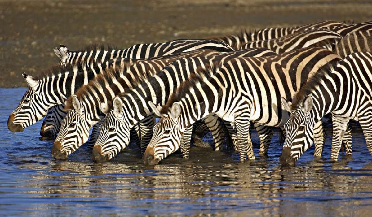 每年五六月間,龐大的斑馬群和花斑牛羚群匯聚在塞倫蓋蒂高原,六七匹一排橫立,準(zhǔn)備開始行程500公里的向西遷徙。恩戈羅恩戈羅自然保護(hù)區(qū)的這一壯觀景象舉世罕見。