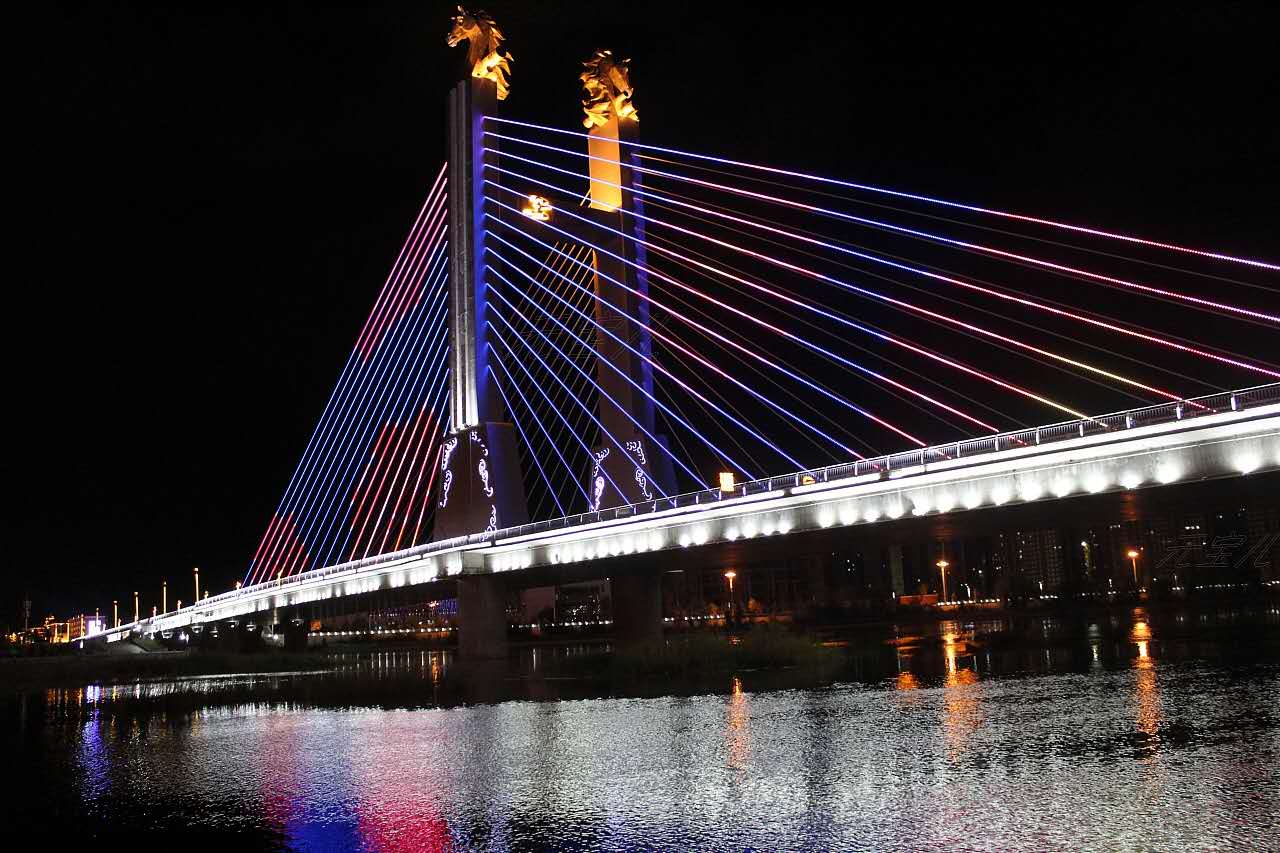 哈薩爾斜拉橋位于內(nèi)蒙古自治區(qū)呼倫貝爾市海拉爾區(qū)伊敏河上,是呼倫貝爾市地標(biāo)性橋梁、道路景觀工程,同時(shí)還是呼倫貝爾市與海拉爾區(qū)兩級(jí)的重點(diǎn)項(xiàng)目建設(shè)工程,是內(nèi)蒙古地區(qū)首座高塔大跨度斜拉橋。