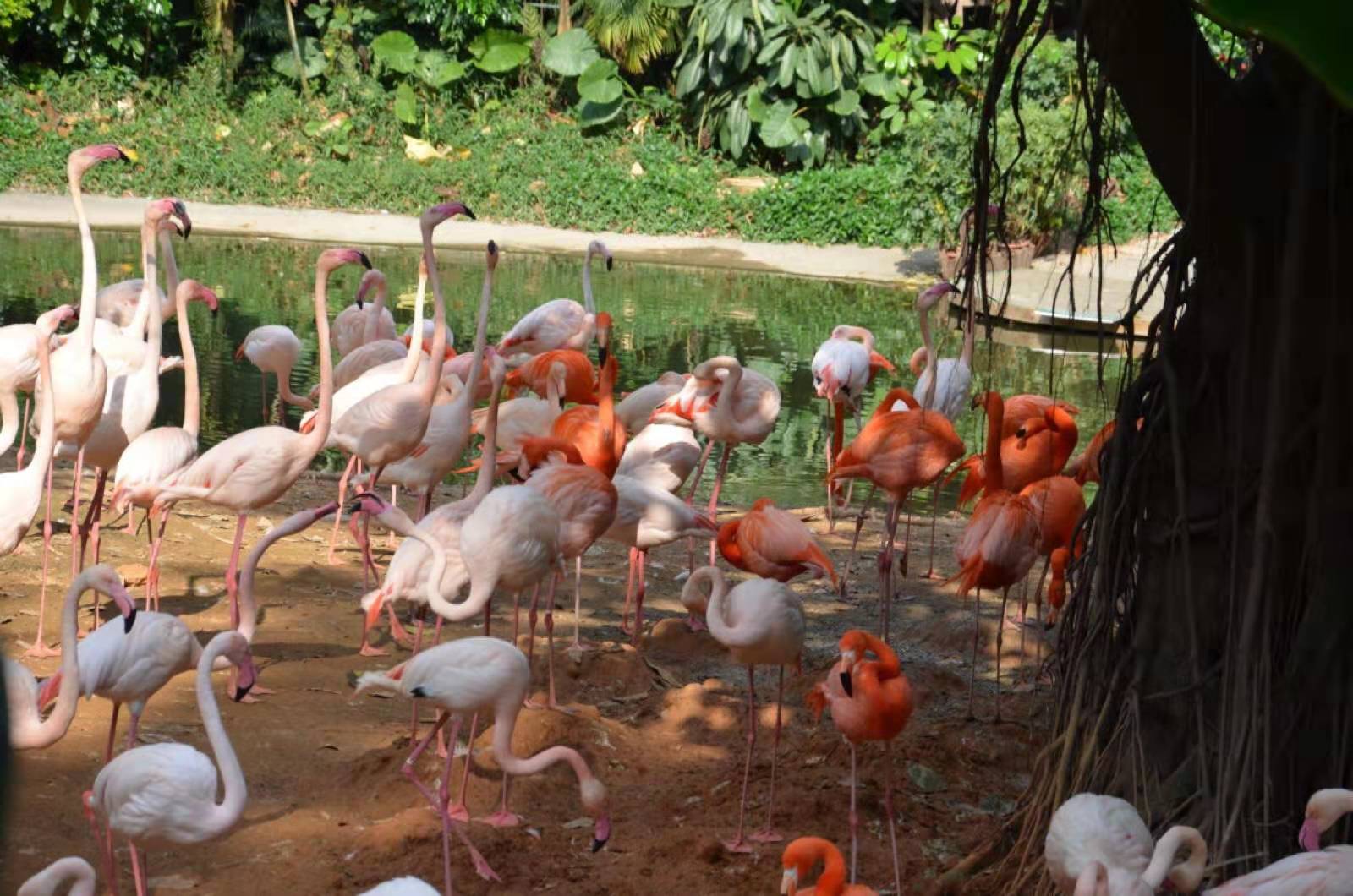 亞馬遜雨林位于南門入口,這里有一片霧氣彌漫的雨林中心,這里正是成百只火烈鳥的家,火紅的火烈鳥把綠意盎然的島變成了火燒島,熱鬧而聒噪的火烈鳥叫聲顯示出這片雨林無限的活力。游客可以選擇環(huán)湖綠道或者熱帶雨林小道兩條路線進(jìn)行參觀:綠道可以欣賞雨林全貌,而小道也是觀景也是別有風(fēng)味,可以沿途觀賞多種珍稀植物。行走于熱帶雨林小道深入到雨林區(qū)的核心,為了模擬雨林的濕氣和生態(tài),沿途安裝了高科技噴霧裝置,即使在炎炎夏日,行走在雨林小道,仿佛如行走在真正的熱帶雨林一般涼爽濕潤。